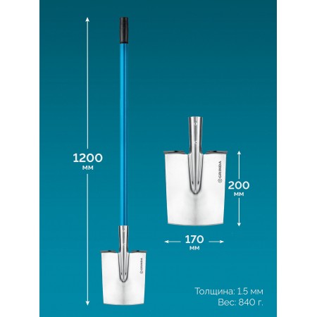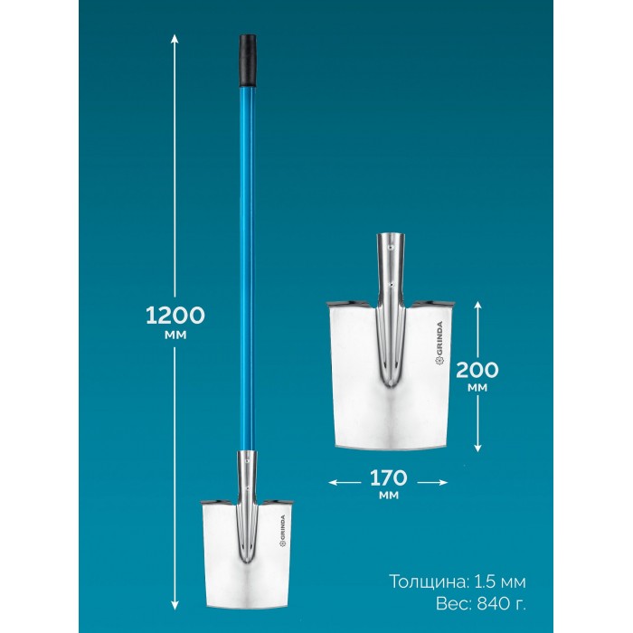 GRINDA WS-3 Лопата дамская штыковая прямоугольная, 200х170х1200мм, алюминиевый черенок, PROLine (421828)