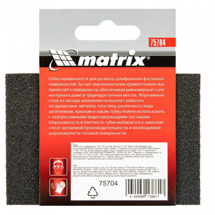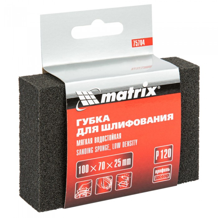 Губка для шлифования, 100 х 70 х 25 мм, мягкая, P120 Matrix (75704)
