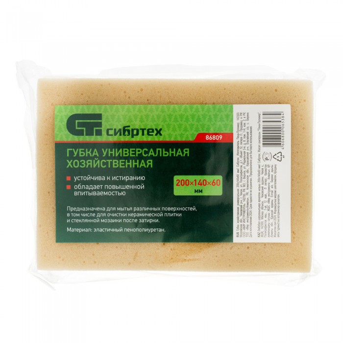 Губка хозяйственная универсальная 200 х 140 х 60 мм Сибртех (86809)