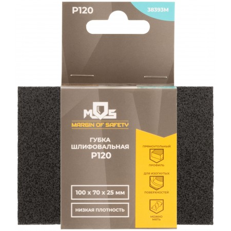 Губка шлифовальная алюминий-оксидная, 100х70х25 мм, Р 120 (38393М)
