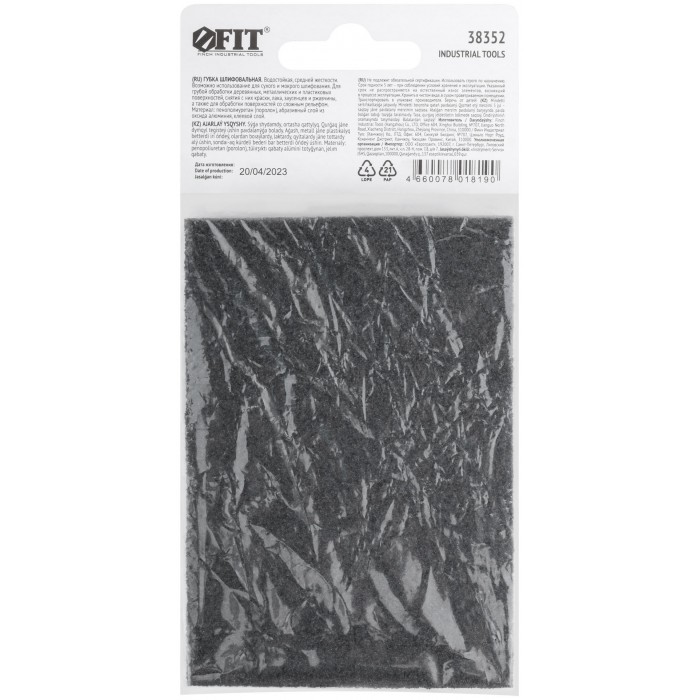 100 х 70 х 25 мм. Водостойкая. Средняя жесткость. Для доводочных работ. Для обработки металла, дерева, фанеры, гипсокартона, ДСП. Материал: алюминий- оксидный абразивный слой. Упаковка: п/э пакет с картонным подвесом.