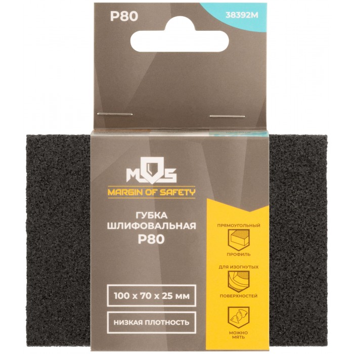 Губка шлифовальная алюминий-оксидная, 100х70х25 мм, Р 80 (38392М)