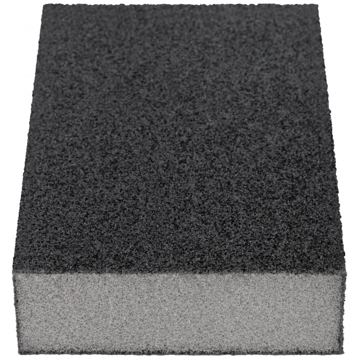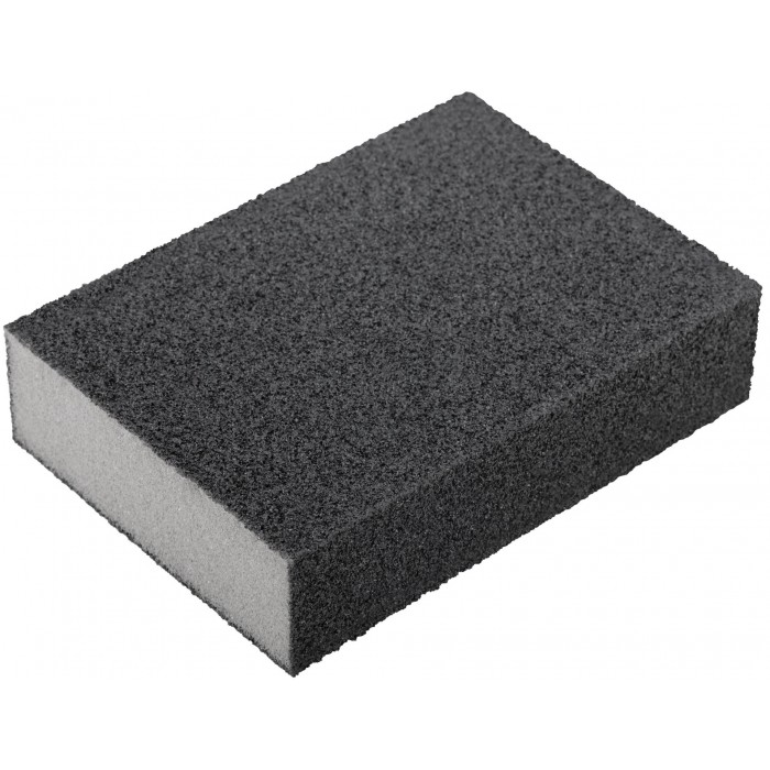 100 х 70 х 25 мм. Разнозернистая. Водостойкая. Средняя жесткость. Для доводочных работ. Для обработки металла, дерева, фанеры, гипсокартона, ДСП. Материал: алюминий- оксидный абразивный слой. Упаковка: п/э пакет с картонным подвесом.