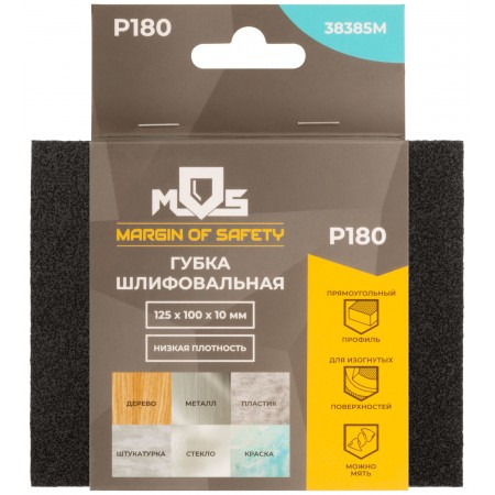 Губка шлифовальная алюминий-оксидная, 125х100х10 мм, Р 180 (38385М)