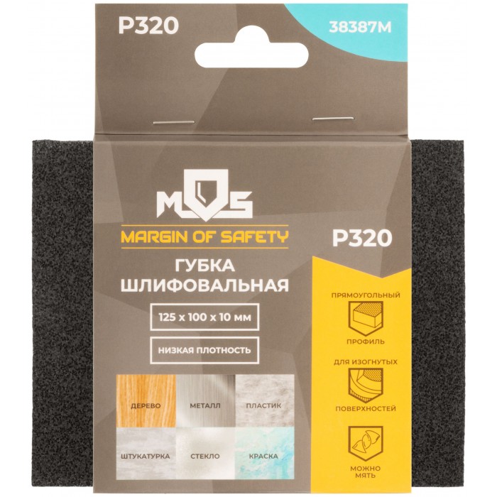 Губка шлифовальная алюминий-оксидная, 125х100х10 мм, Р 320 (38387М)