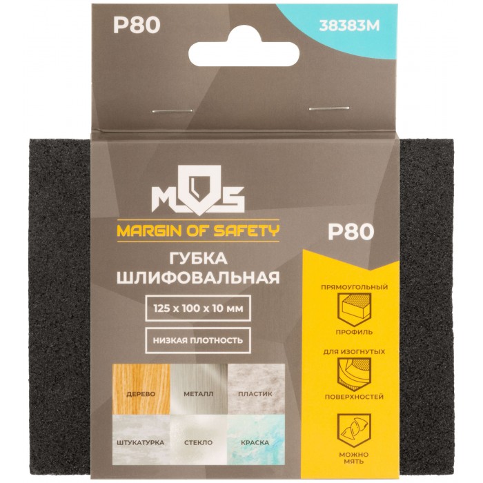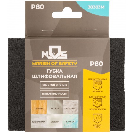 Губка шлифовальная алюминий-оксидная, 125х100х10 мм, Р 80 (38383М)
