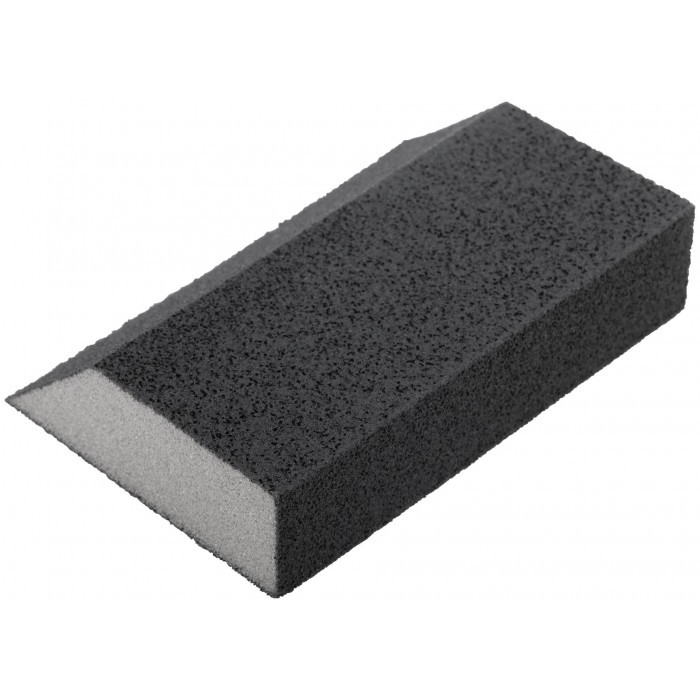 100 х 70 х 25 мм. Угловая. Водостойкая. Средняя жесткость. Для доводочных работ. Для обработки металла, дерева, фанеры, гипсокартона, ДСП. Материал: алюминий-оксидный абразивный слой. Упаковка: п/э пакет с картонным подвесом.