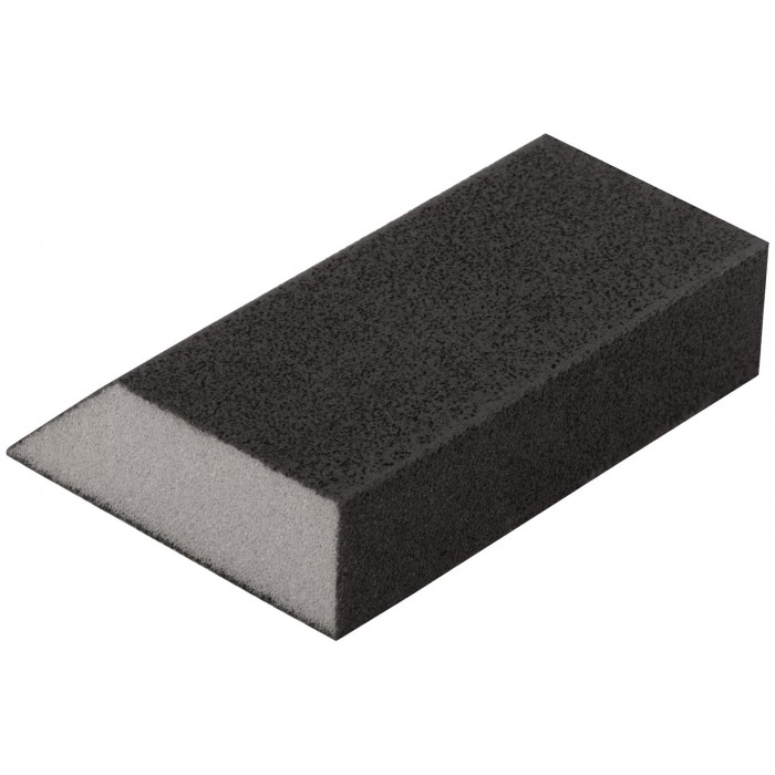 100 х 70 х 25 мм. Угловая. Водостойкая. Средняя жесткость. Для доводочных работ. Для обработки металла, дерева, фанеры, гипсокартона, ДСП. Материал: алюминий-оксидный абразивный слой. Упаковка: п/э пакет с картонным подвесом.