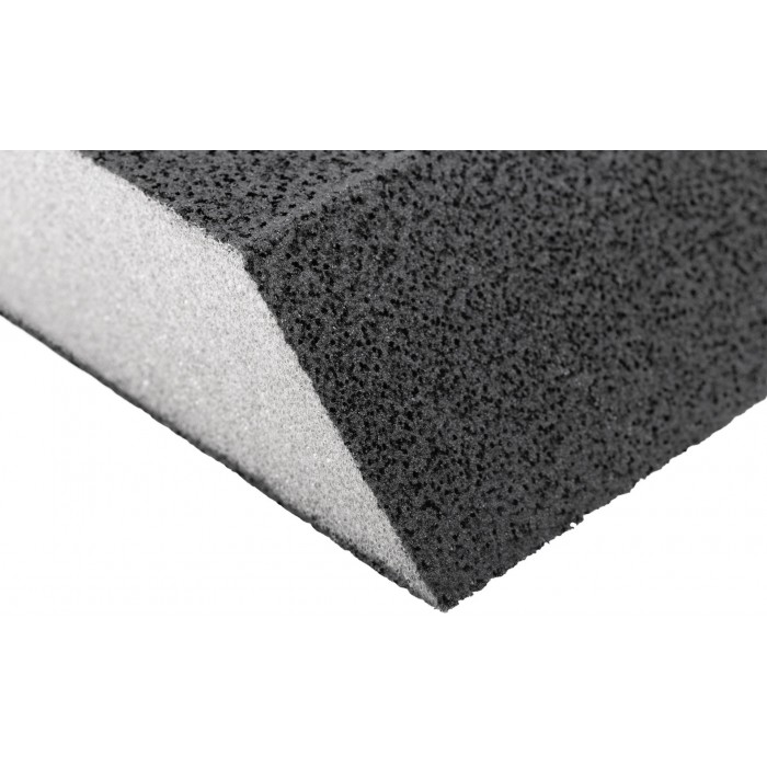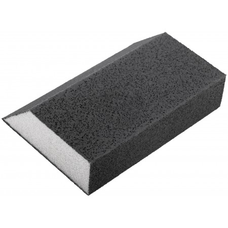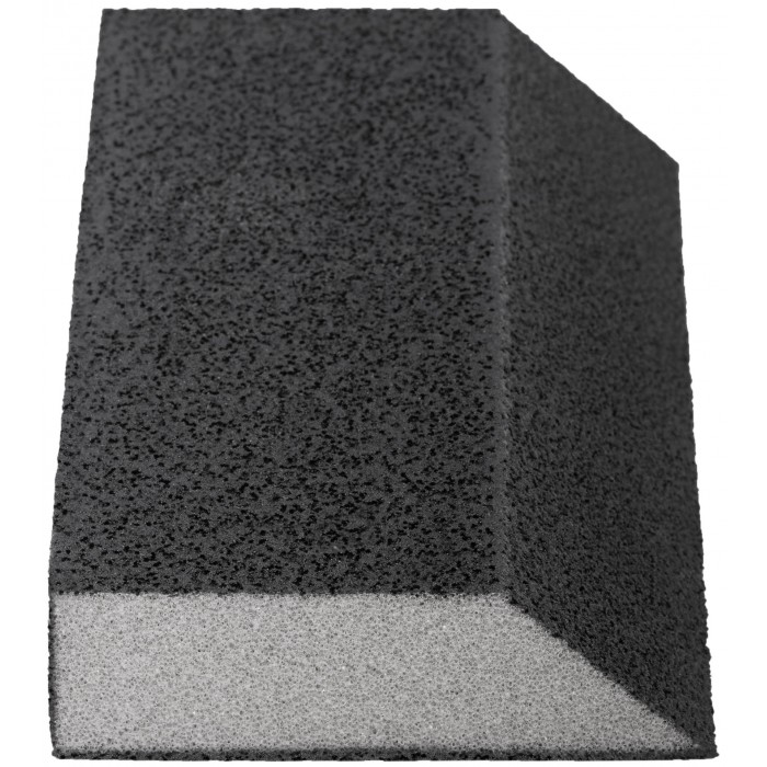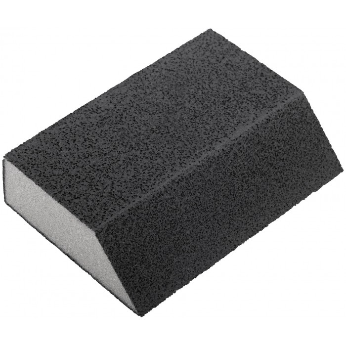 100 х 70 х 25 мм. Угловая. Водостойкая. Средняя жесткость. Для доводочных работ. Для обработки металла, дерева, фанеры, гипсокартона, ДСП. Материал: алюминий-оксидный абразивный слой. Упаковка: п/э пакет с картонным подвесом.