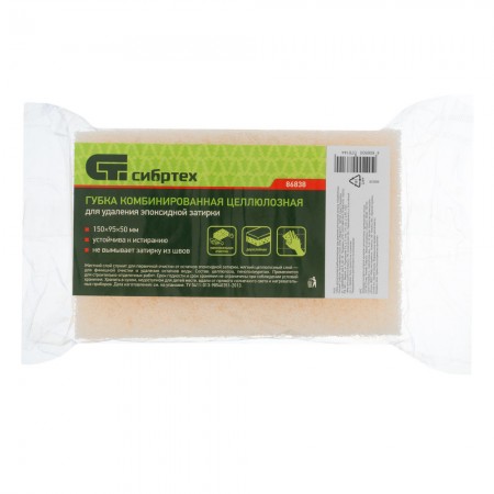 Губка целлюлозная комбинированная для удаления эпоксидной затирки 150 x 95 x 50 мм, Сибртех (86838)