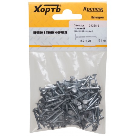 Гвоздь толевый, оцинкованный 2х20 120 гр. (фасовка) (29290-3)