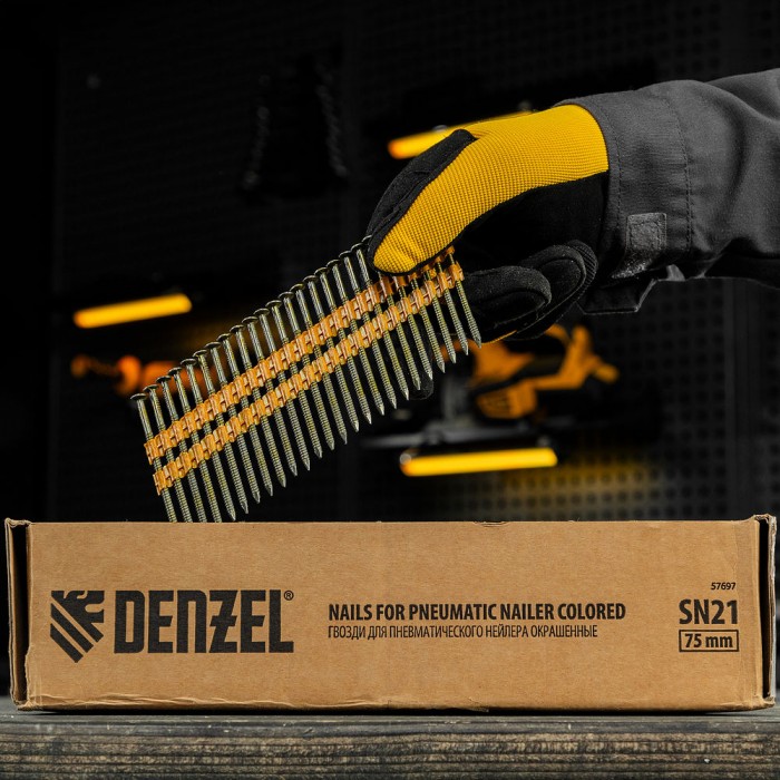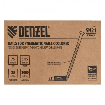 Гвозди для пнев. нейлера (крашен.) длина - 75 мм, диам. - 3,05 мм, 2000 шт. Denzel (57697)