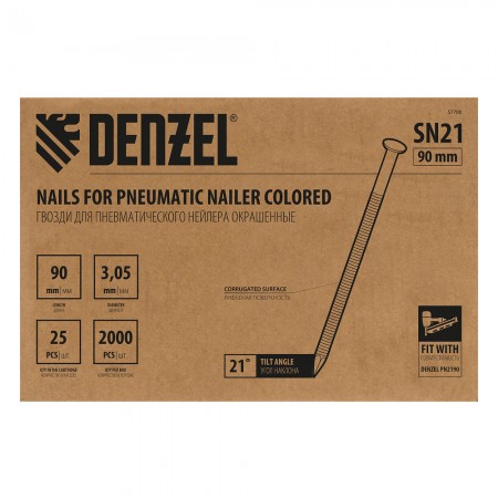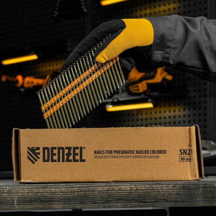 Гвозди для пнев. нейлера (крашен.) длина - 90 мм, диам. - 3,05 мм, 2000 шт. Denzel (57700)