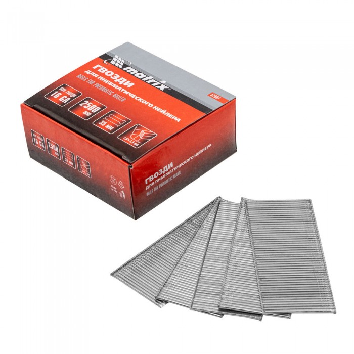 Гвозди для пневматического нейлера 16GA, сечение 1.6 х 1.4, длина 35 мм, 2500 шт Matrix (57607)