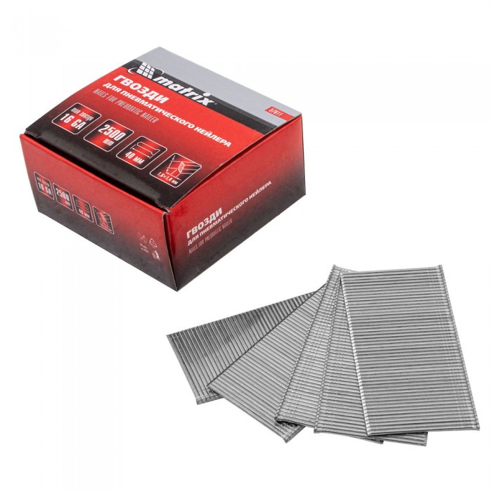 Гвозди для пневматического нейлера 16GA, сечение 1.6 х 1.4, длина 40 мм, 2500 шт Matrix (57611)