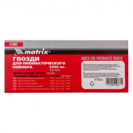 Гвозди для пневматического нейлера, длина 10 мм, ширина 1.25 мм, толщина 1 мм, 5000 шт Matrix (57602)