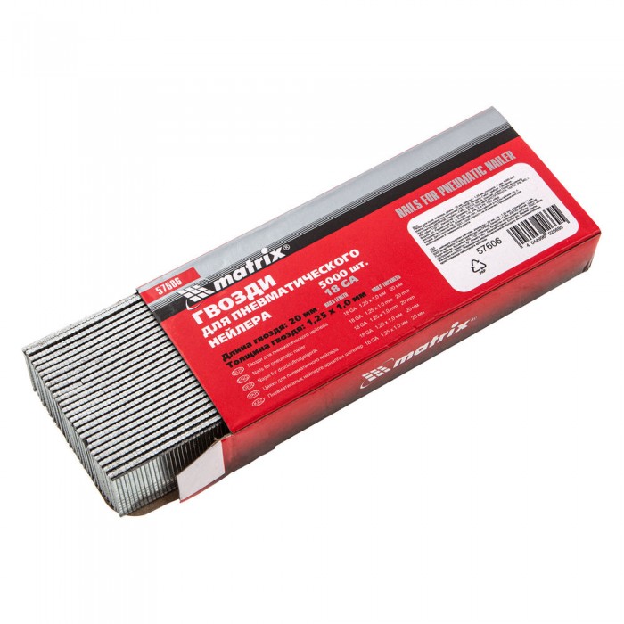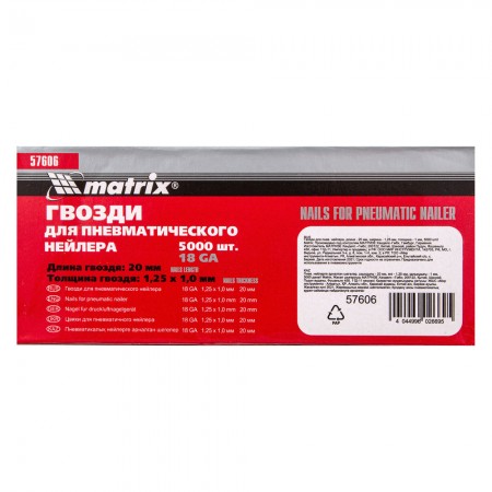 Гвозди для пневматического нейлера, длина 20 мм, ширина 1.25 мм, толщина 1 мм, 5000 шт Matrix (57606)