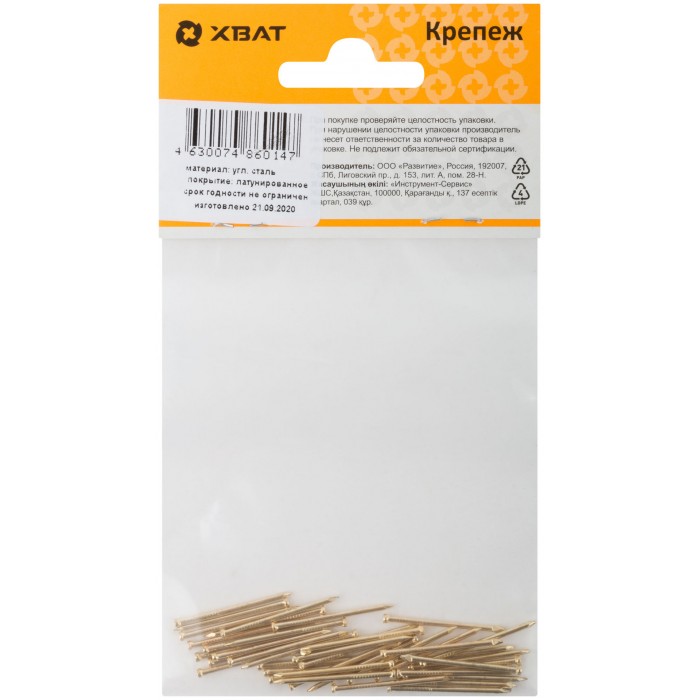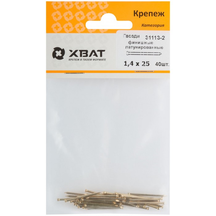 Гвозди финишные латунированные 1,4 х 25 (фасовка 40 шт.) (31113-2)