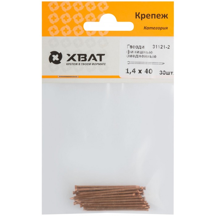 Гвозди финишные омедненные 1,4 х 40 (фасовка 30 шт.) (31121-2)
