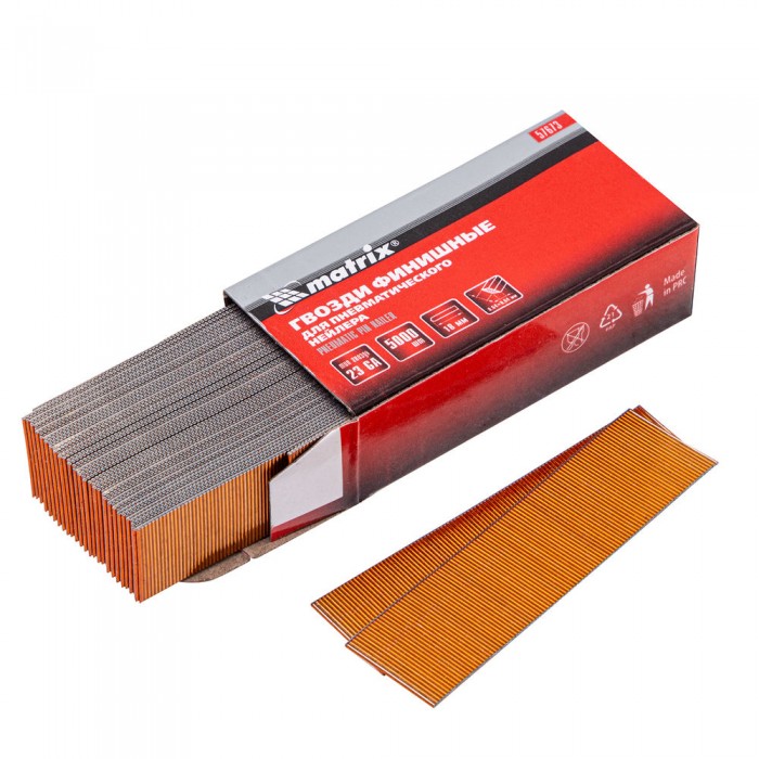 Гвозди финишные, (шпильки) 23GA для пневматического нейлера финишного D 0.64 мм, длина 18 мм, 5000 шт Matrix (57673)