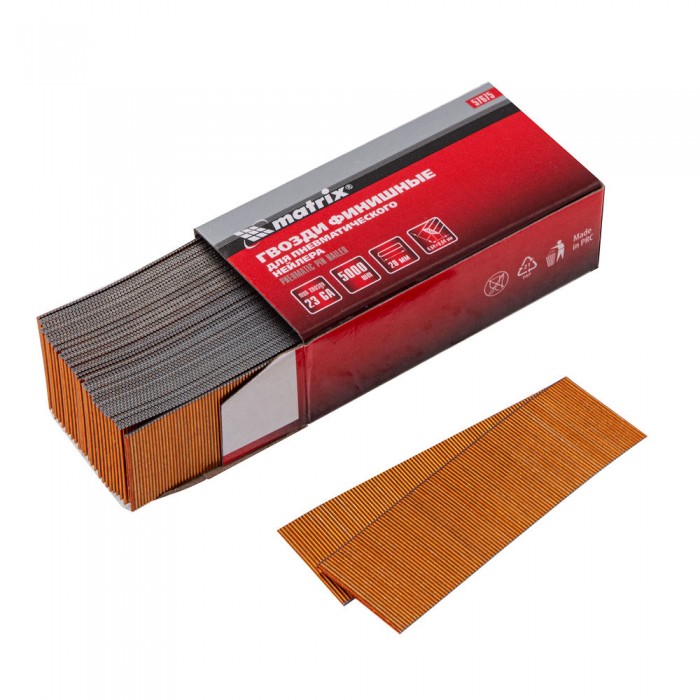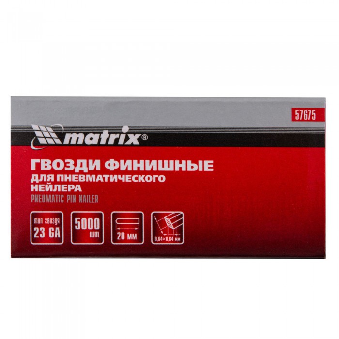 Гвозди финишные, (шпильки) 23GA для пневматического нейлера финишного D 0.64 мм, длина 20 мм, 5000 шт Matrix (57675)