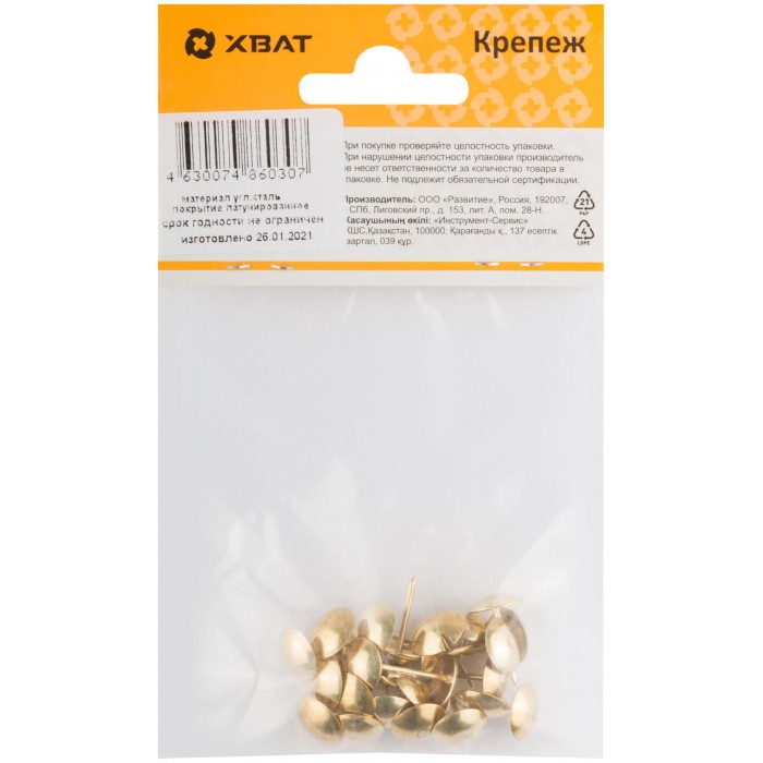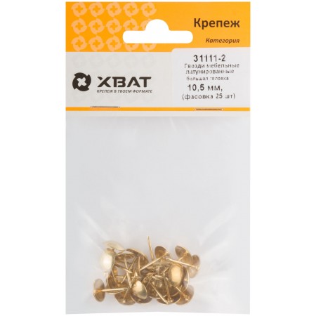 Гвозди мебельные латунированные 10,5 мм, большая головка (фасовка 25 шт) (31111-2)