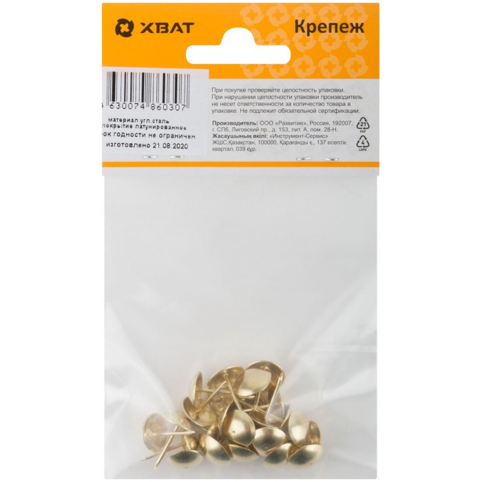 Латунированные. Предназначены для крепления задних стенок из ДВП и МДФ в корпусной мебели. Имеют большую грибовидную декоративную шляпку, позволяющую использовать их при обивке мебели, дверей и т.д.