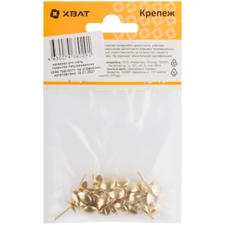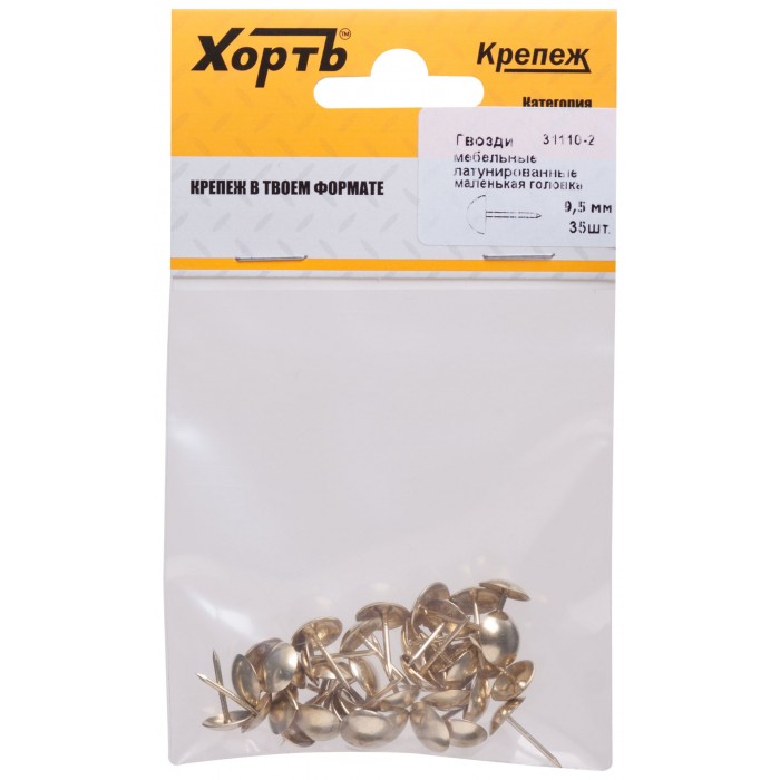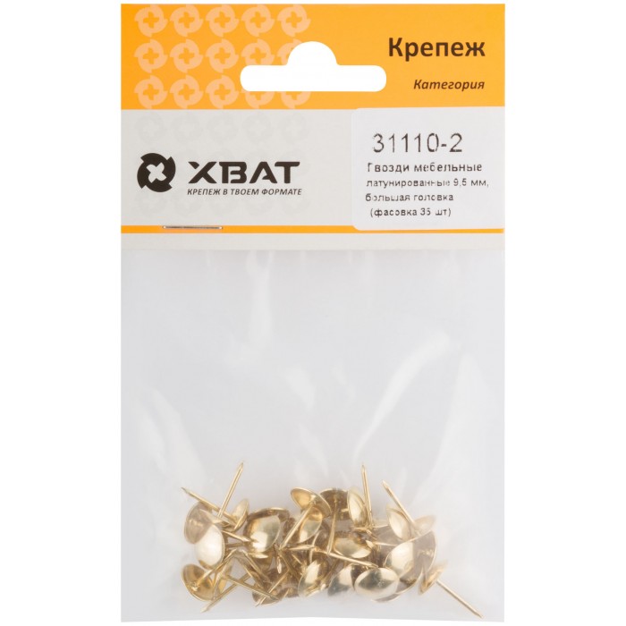 Гвозди мебельные латунированные 9,5 мм, большая головка (фасовка 35 шт) (31110-2)
