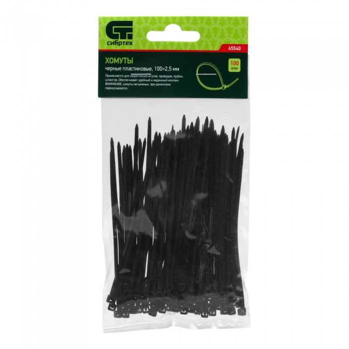 Хомуты, 100 x 2.5 мм, пластиковые, черные, 100 шт Сибртех (45540)