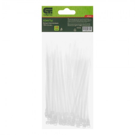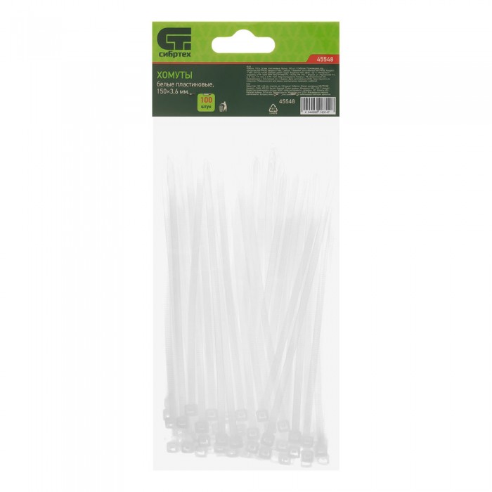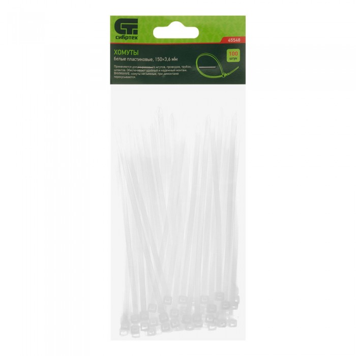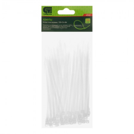 Хомуты, 150 х 3.6 мм, пластиковые, белые, 100 шт Сибртех (45548)