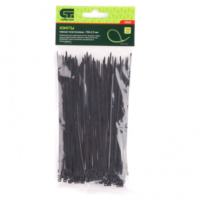 Хомуты, 150 x 2.5 мм, пластиковые, черные, 100 шт Сибртех (45545)