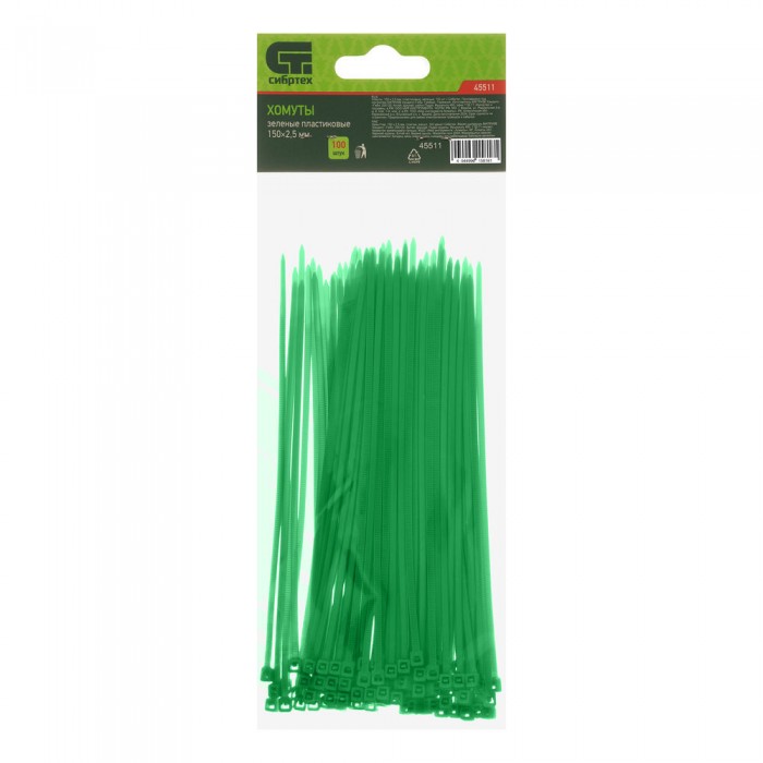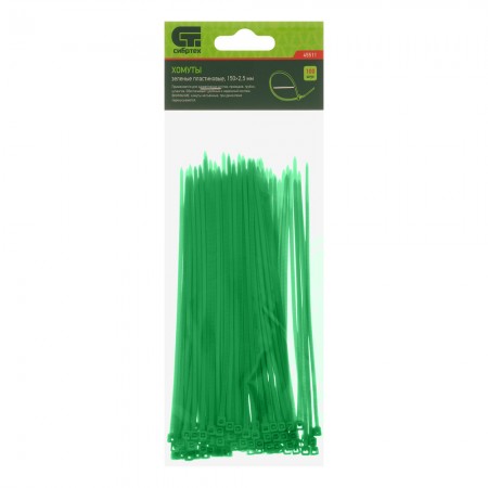 Хомуты, 150 x 2.5 мм, пластиковые, зеленые, 100 шт Сибртех (45511)
