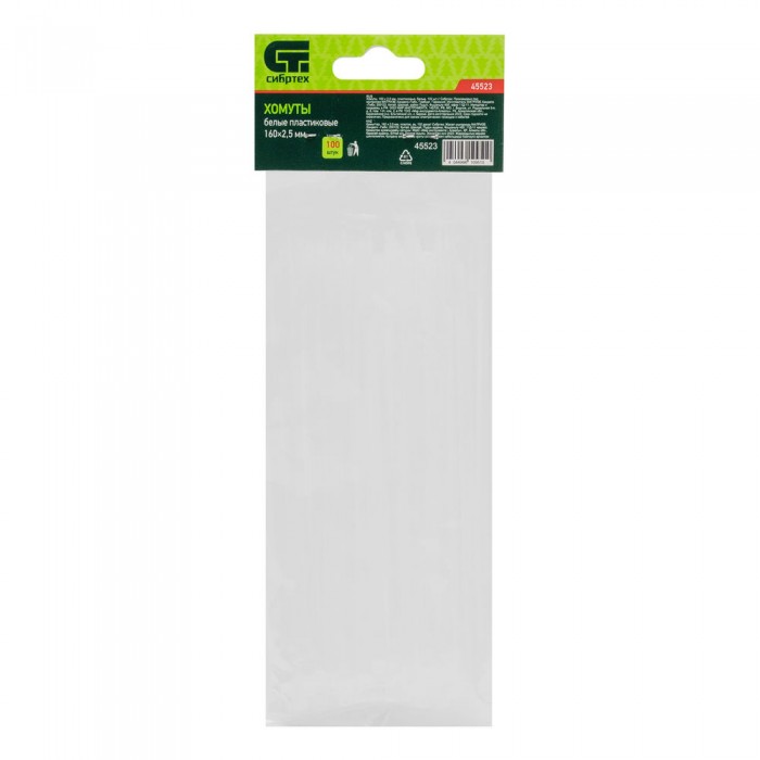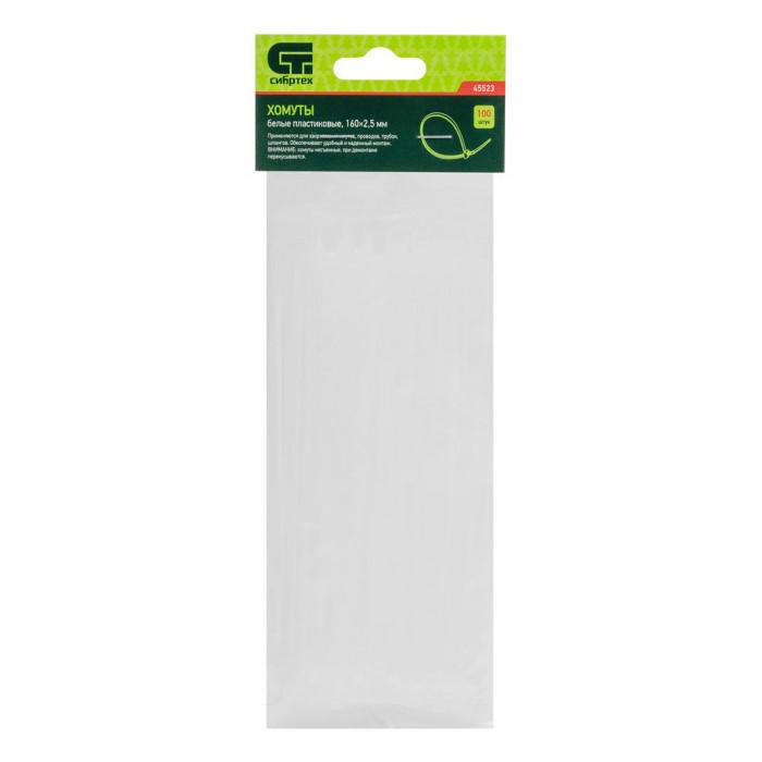 Хомуты, 160 x 2.5 мм, пластиковые, белые, 100 шт Сибртех (45523)