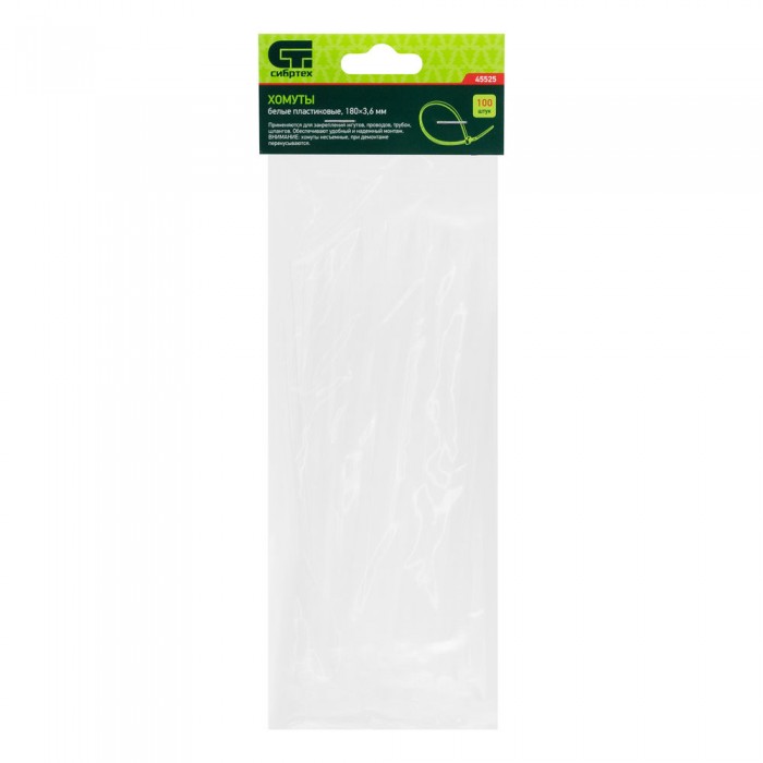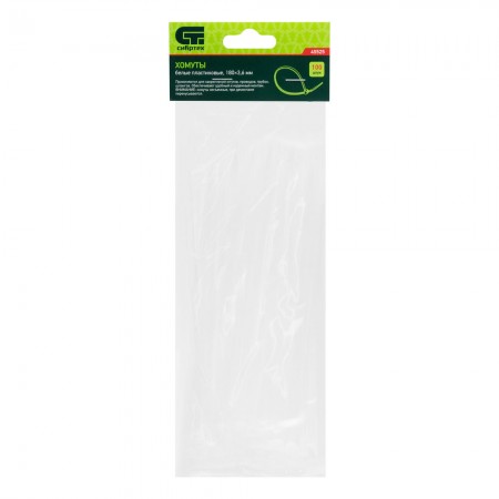 Хомуты, 180 x 3.6 мм, пластиковые, белые, 100 шт Сибртех (45525)