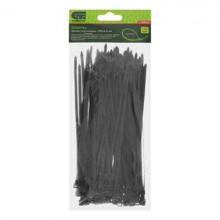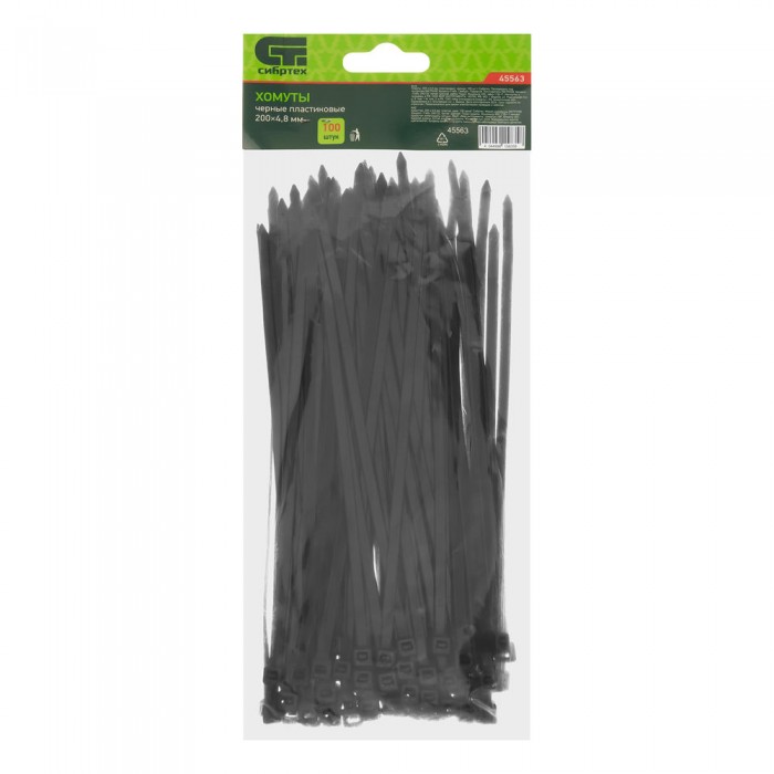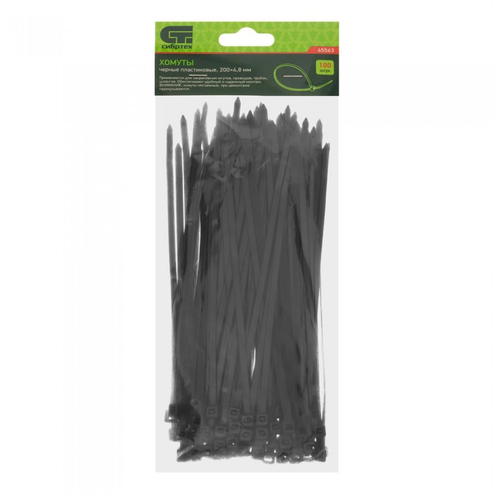 Хомуты, 200 x 4.8 мм, пластиковые, черные, 100 шт Сибртех (45563)