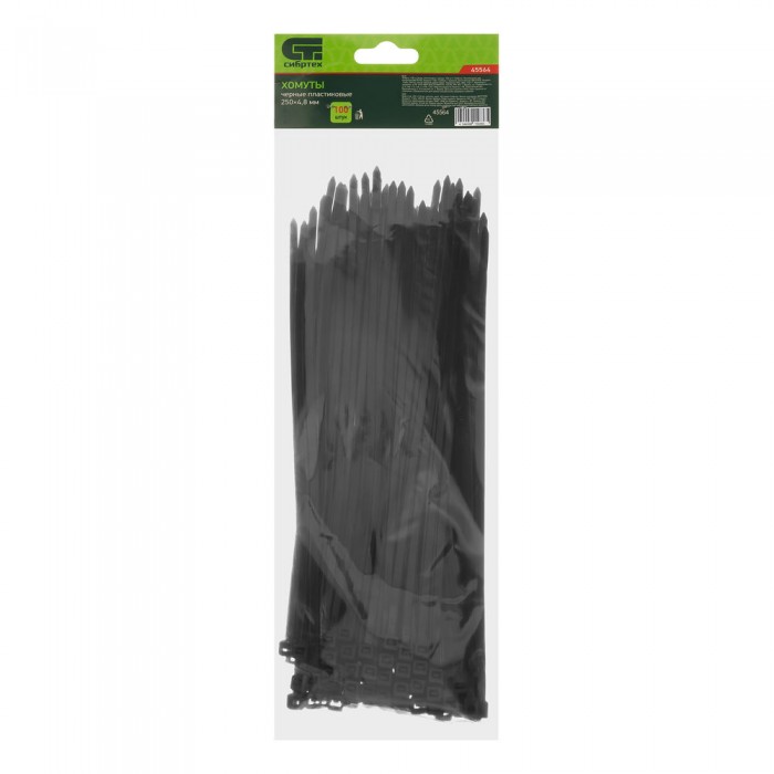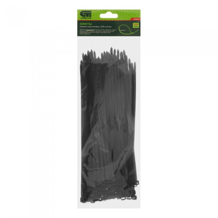 Хомуты, 250 x 4.8 мм, пластиковые, черные, 100 шт Сибртех (45564)