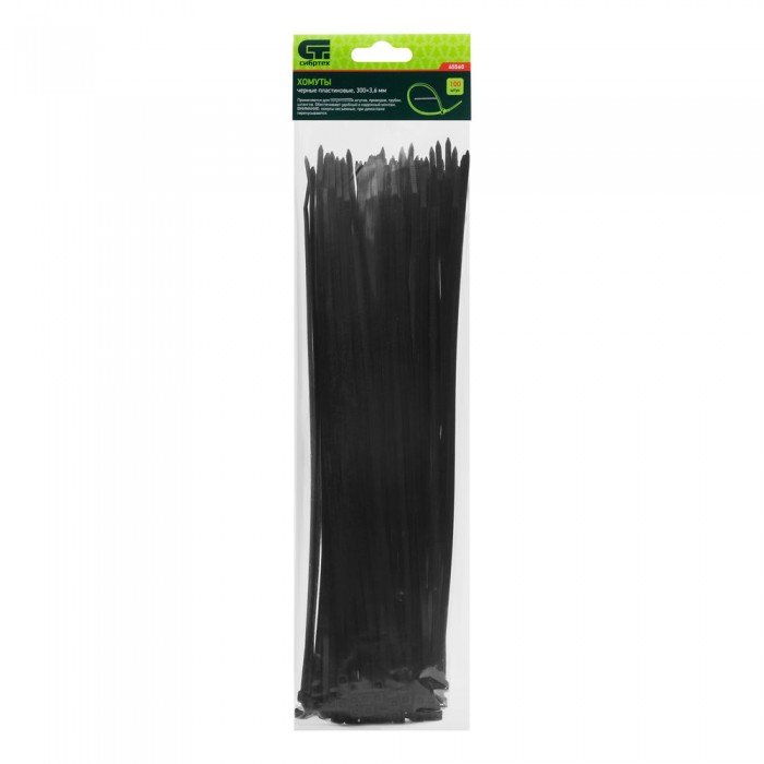 Хомуты, 300 x 3.6 мм, пластиковые, черные, 100 шт Сибртех (45560)