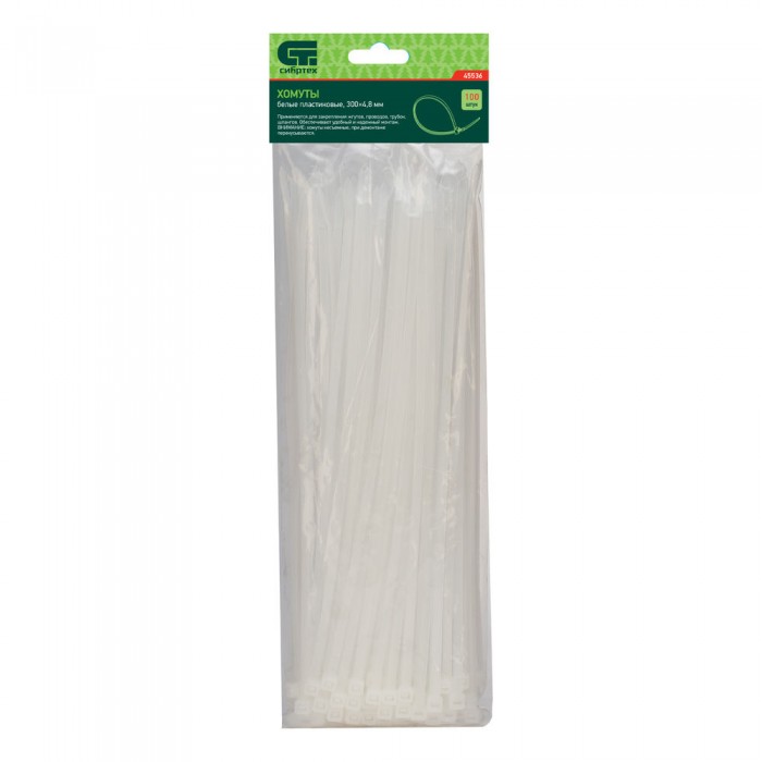 Хомуты, 300 x 4.8 мм, пластиковые, белые, 100 шт Сибртех (45536)