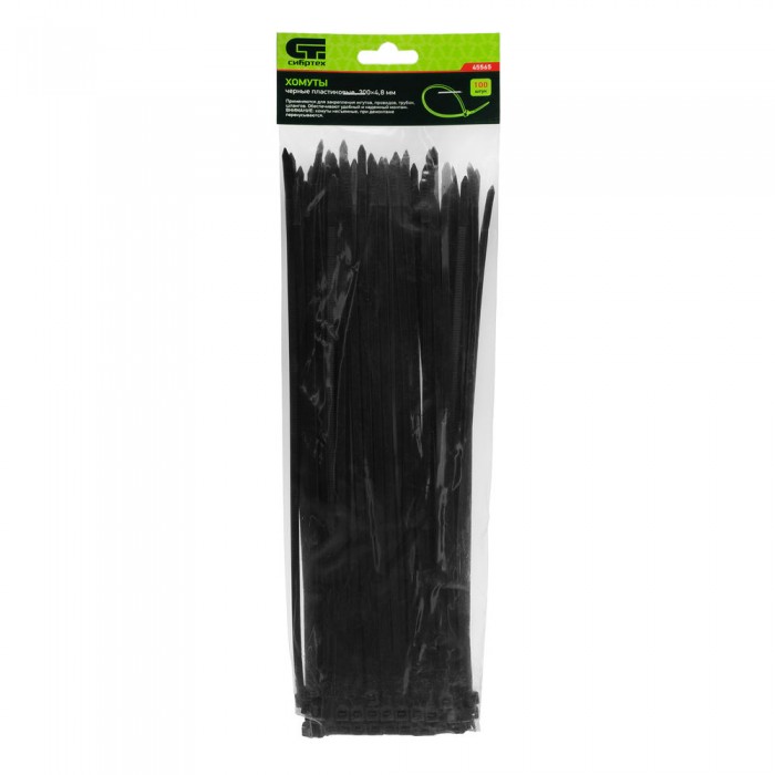 Хомуты, 300 x 4.8 мм, пластиковые, черные, 100 шт Сибртех (45565)