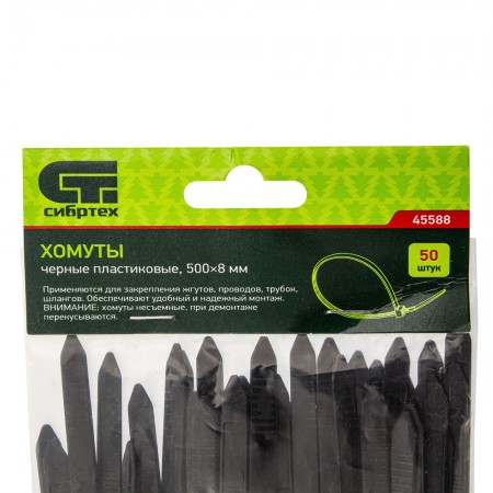 Хомуты, 500 х 8 мм, пластиковые, черные, 50 шт Сибртех (45588)