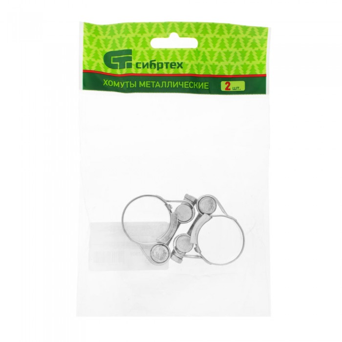 Хомуты металлические, силовые 26-28 мм, ширина 18 мм, шарнирный, W1, 2 шт Сибртех (47509)