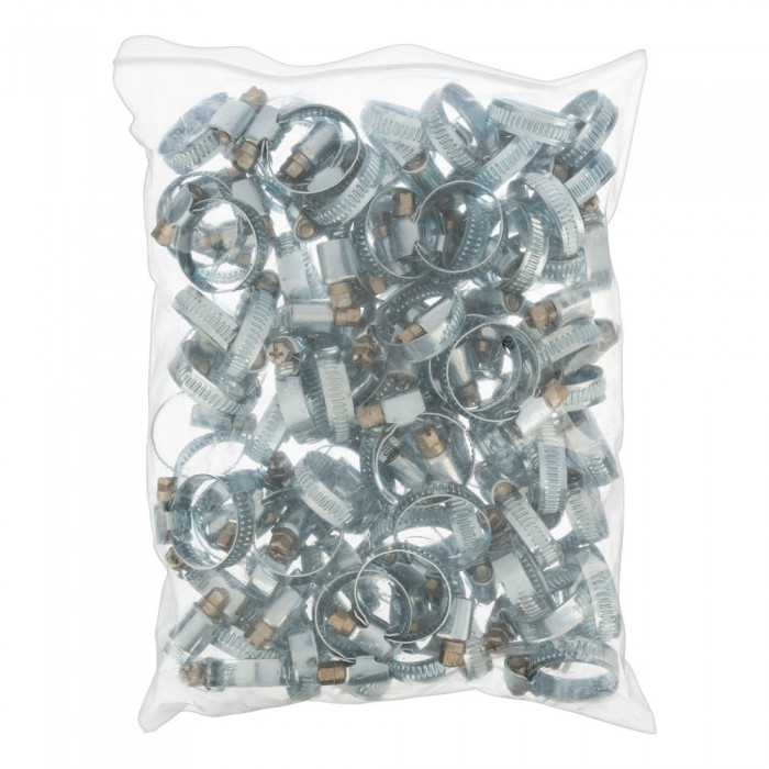 Хомуты металлические, Стандартное болтовое крепление 16-27 мм, 100 штук в упаковке, ширина 9 мм Сибртех (47558)