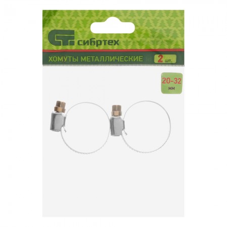 Хомуты металлические, Стандартное болтовое крепление 20-32 мм, 2 шт, ширина 9 мм Сибртех (47658)