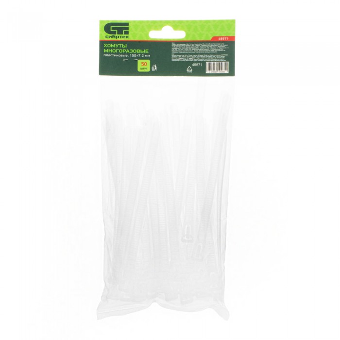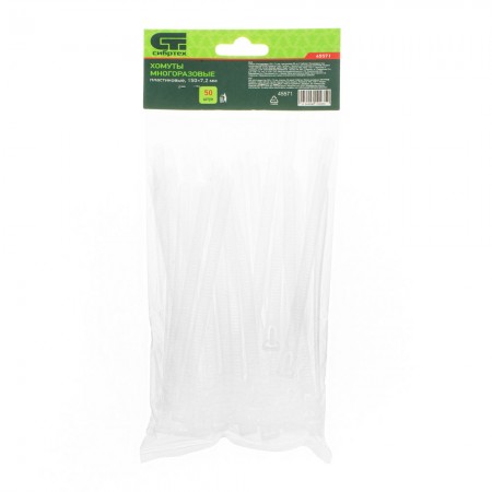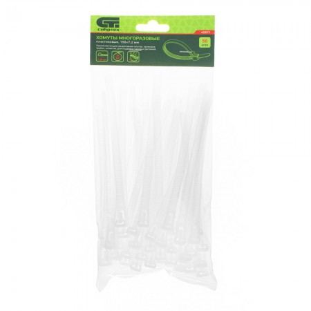 Хомуты многоразовые 150 x 7.2 мм, пластиковые 50 шт Сибртех (45571)
