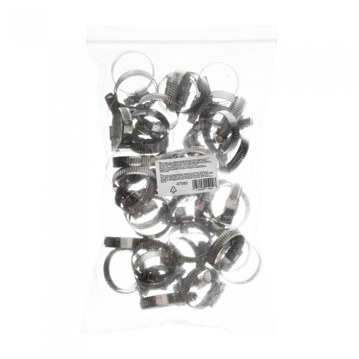 Хомуты нержавеющая сталь, Стандартное болтовое крепление 20-32 мм, 50 штук в упаковке, ширина 9 мм Сибртех (47580)