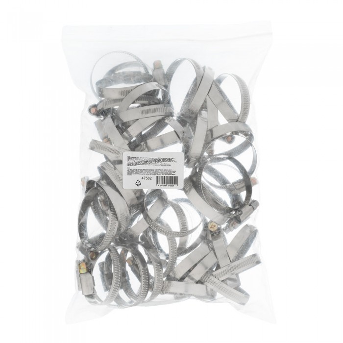 Хомуты нержавеющая сталь, Стандартное болтовое крепление 32-50 мм, 50 штук в упаковке, ширина 9 мм Сибртех (47582)