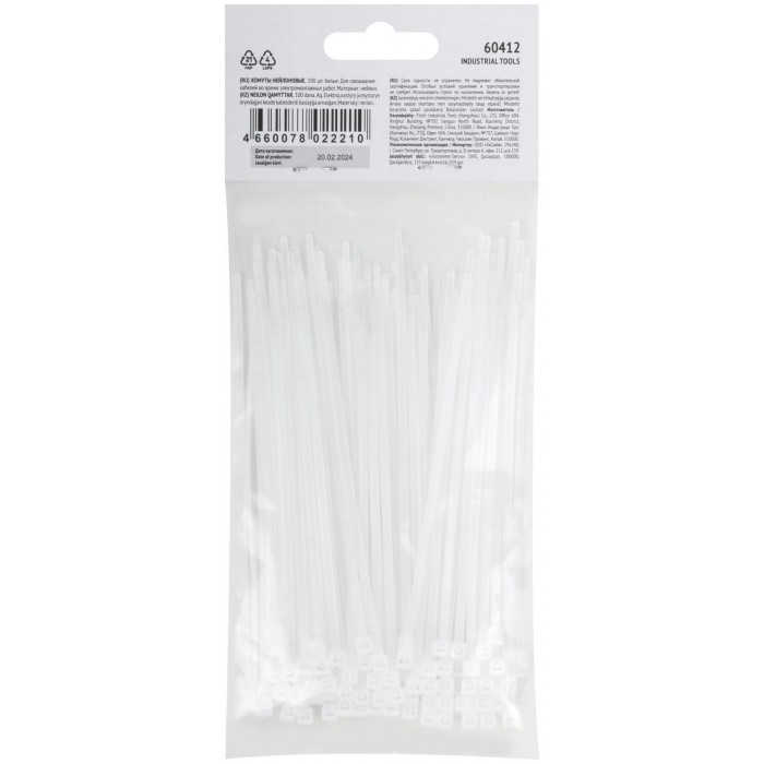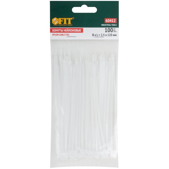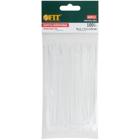 Хомуты нейлоновые, белые д/проводов 100 шт., 120x2,5 мм (60412)