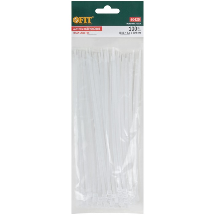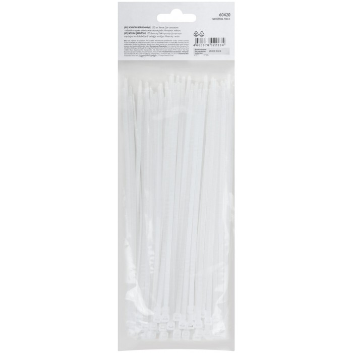 Хомуты нейлоновые, белые д/проводов 100 шт., 200x3,6 мм (60420)