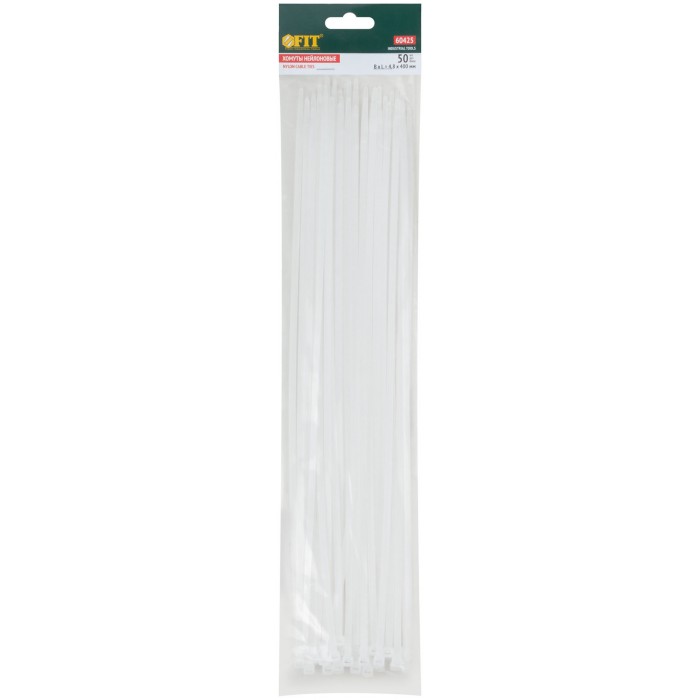 Хомуты нейлоновые, белые д/проводов 50 шт., 400x4,8 мм (60425)