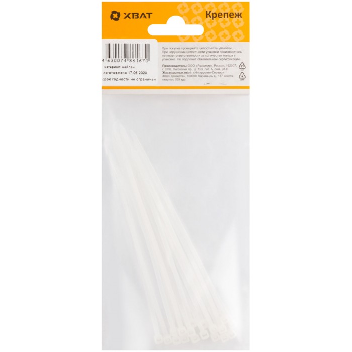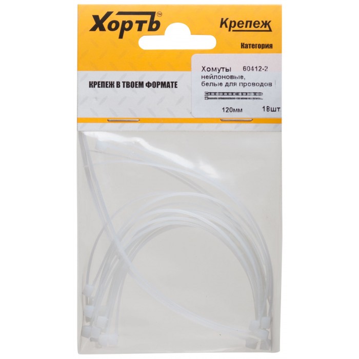 Хомуты нейлоновые, белые для проводов, 120 мм (фасовка 18 шт.) (60412-2)